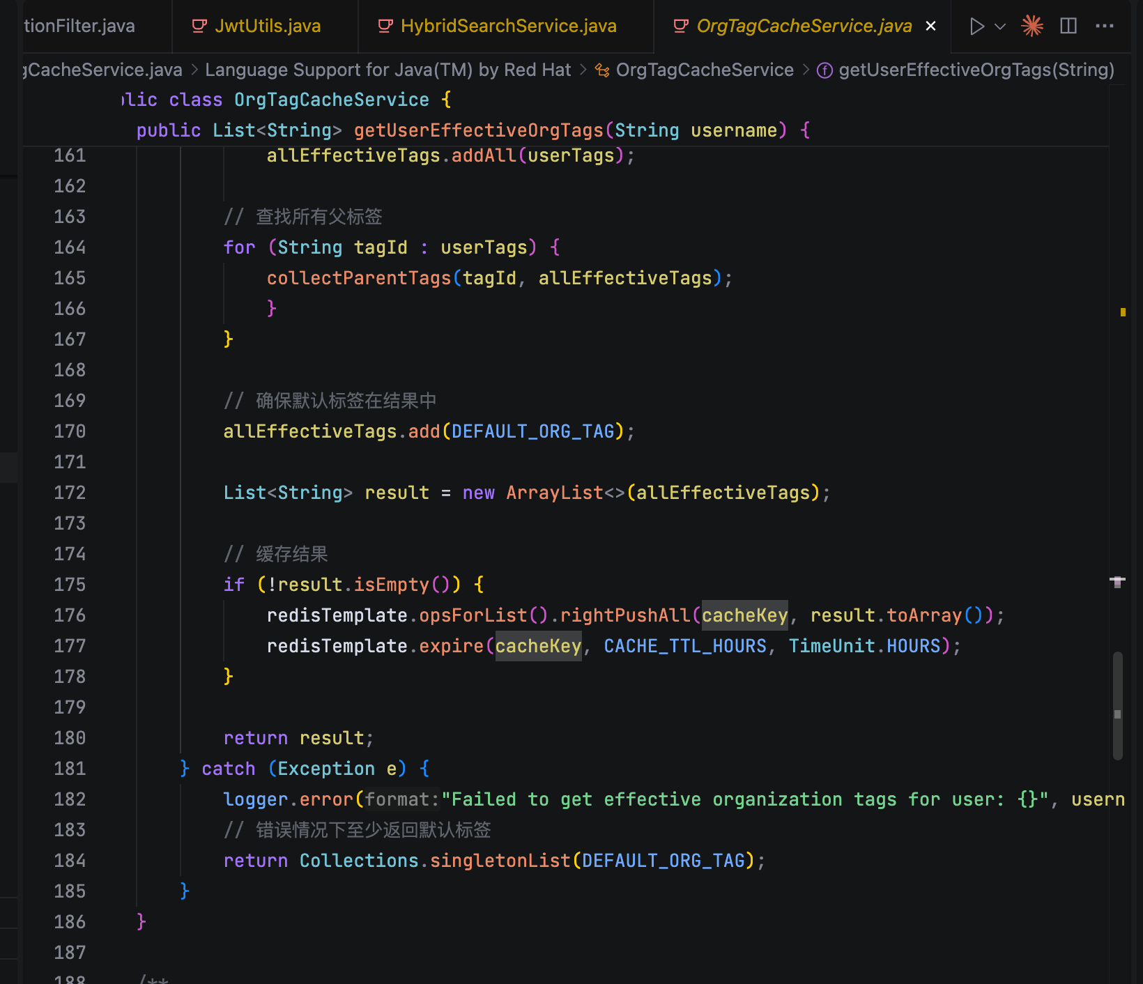 第三阶段是混合检索执行。HybridSearchService.java 执行核心的混合检索逻辑。系统构建包含权限过滤条件的综合查询,结合向量相似度检索和关键词匹配,在 Elasticsearch 中进行高效搜索。这种混合检索策略既保证了语义理解的准确性,又兼顾了关键词匹配的精确性。